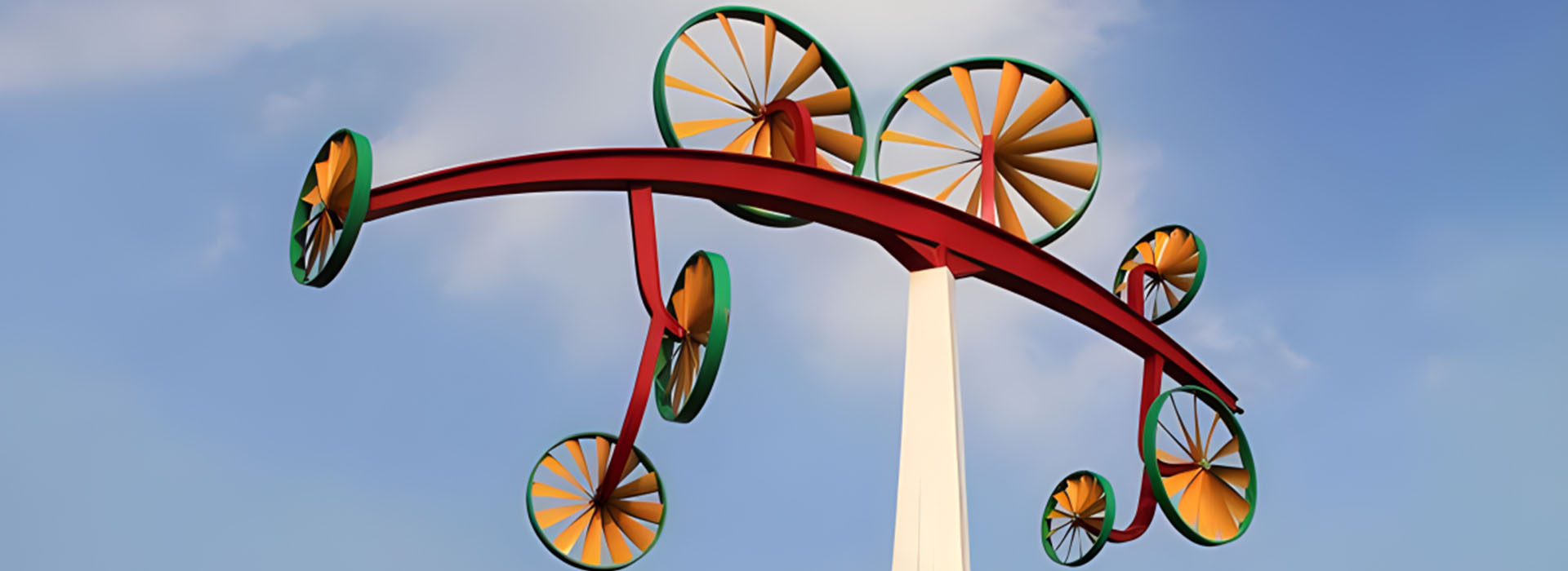不锈钢风车雕塑以现代材质展现传统风车的灵动,寓意着能量与希望的永恒流转。